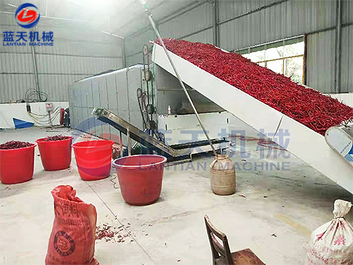 湖南網(wǎng)帶辣椒烘干機(jī)烘干現(xiàn)場:可烘干量大