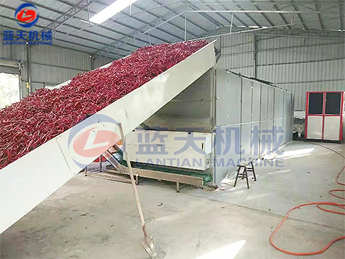 湖南網(wǎng)帶辣椒烘干機(jī)烘干現(xiàn)場(chǎng):可烘干量大